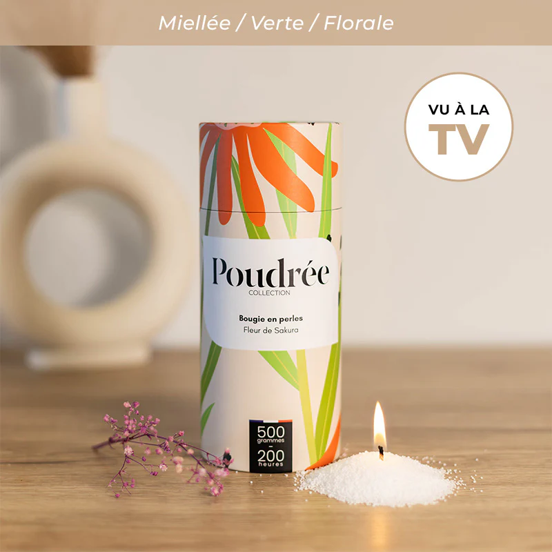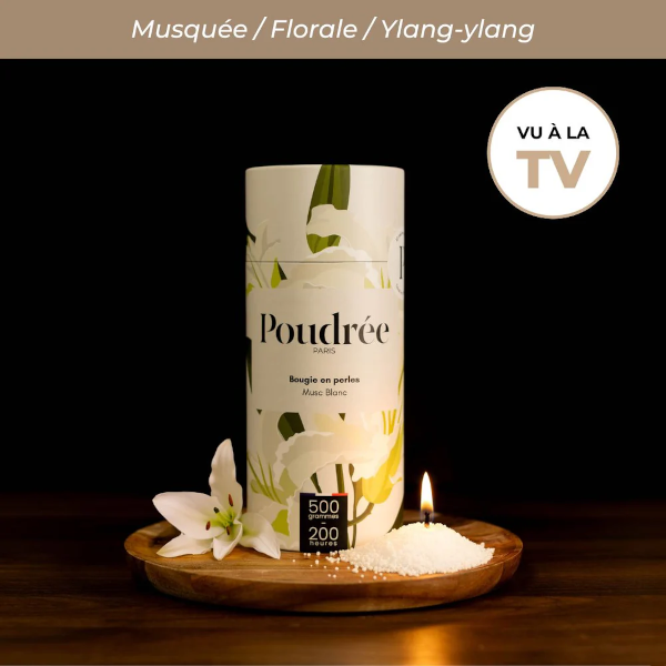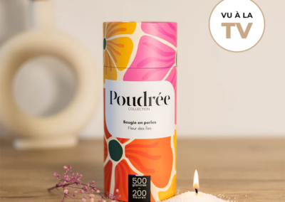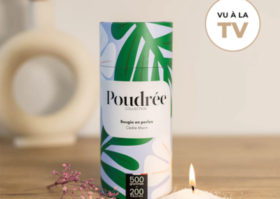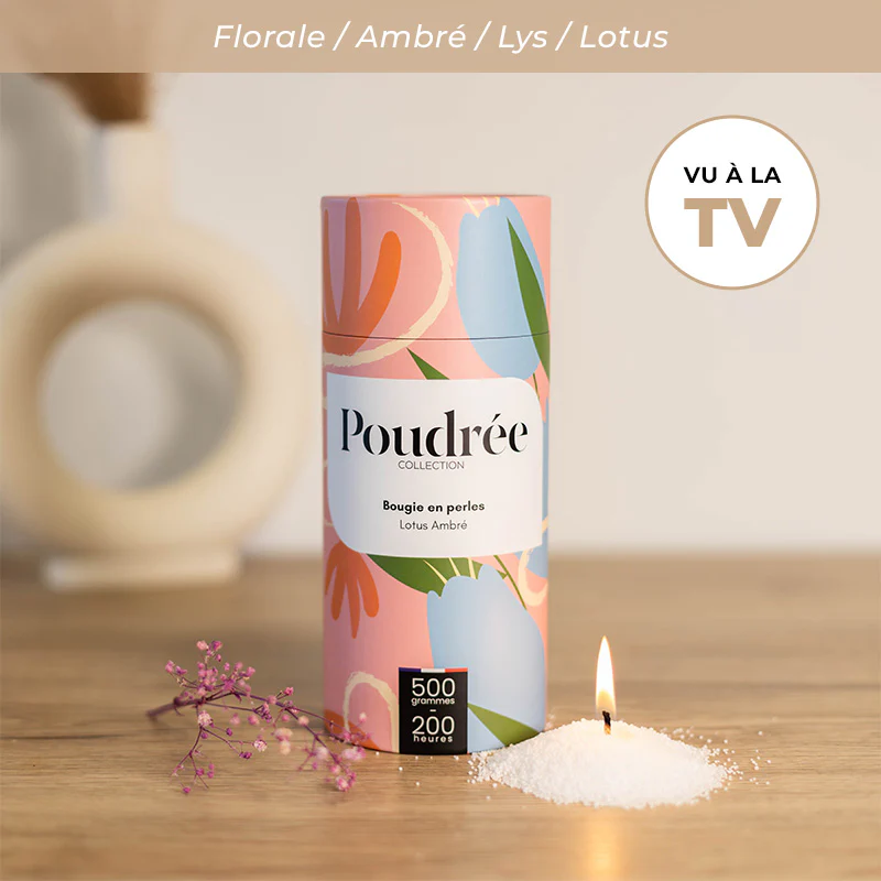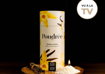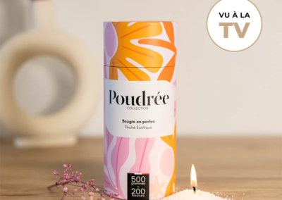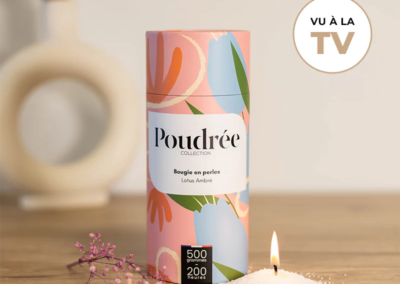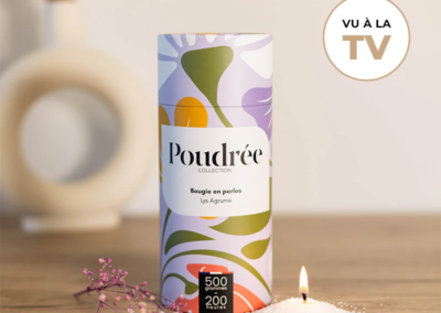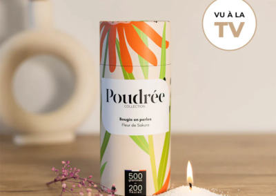 Poudrée Paris est une marque française innovante de bougies en perles de cire végétale, biodégradables, non toxiques et fabriquées en France. Grâce à son concept unique, on peut verser les perles de cire dans n’importe quel contenant, y insérer une mèche puis, après usage, remplacer cette mèche pour obtenir une bougie rechargeable à l’infini, longue durée et sans fumée noire, tout en limitant le gaspillage. Les parfums, issus de Grasse, offrent une expérience olfactive raffinée et personnalisable, alliant élégance, durabilité et sécurité pour l’intérieur